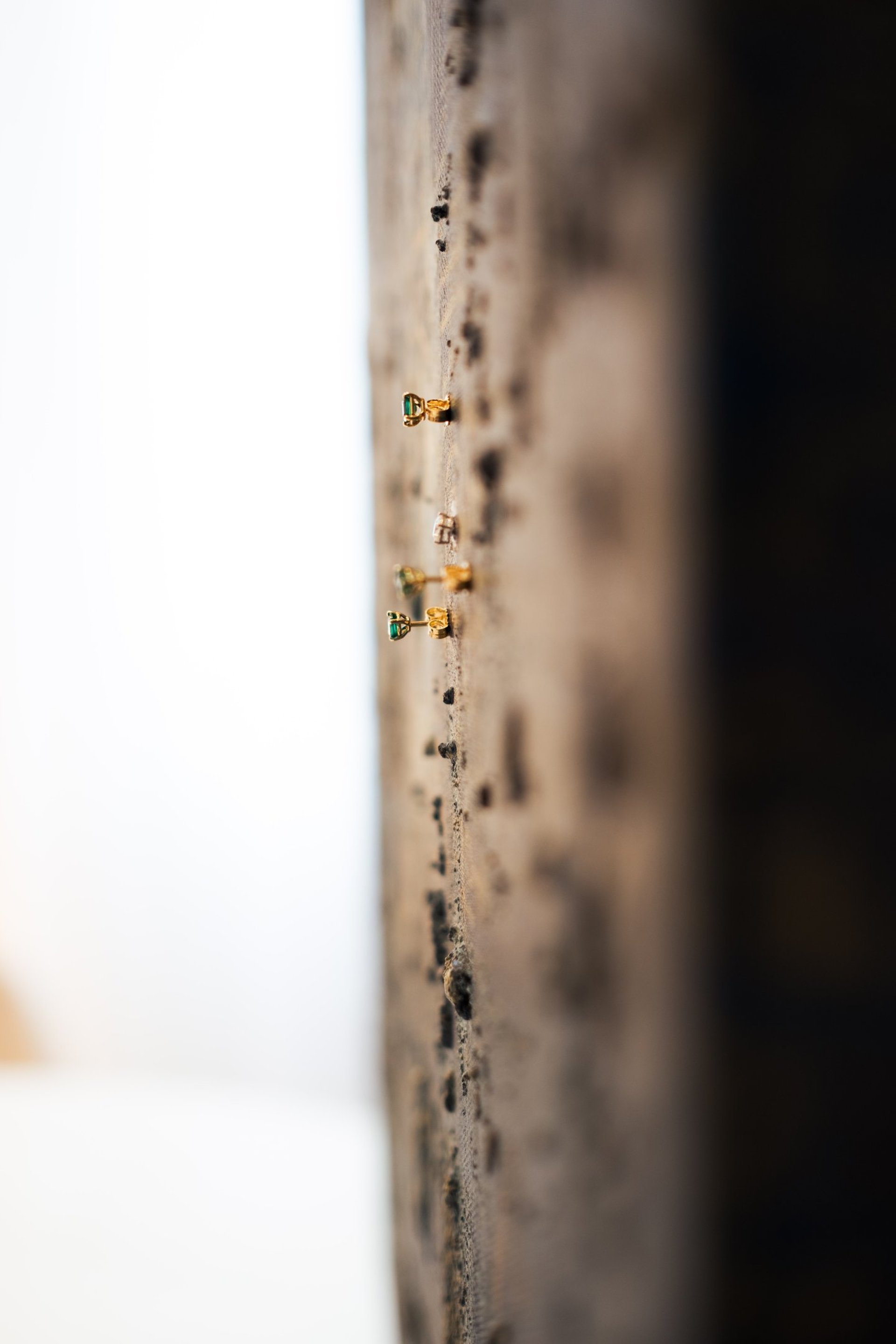 Lebanese artist Ghanem Hassan, in his 8th solo exhibition ‘What the Silence Carried,’ fuses genuine diamonds and emeralds with abstract canvases, symbolizing resilience, light, and rebirth.