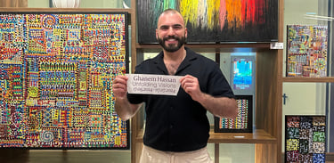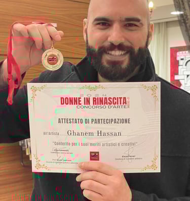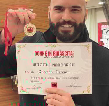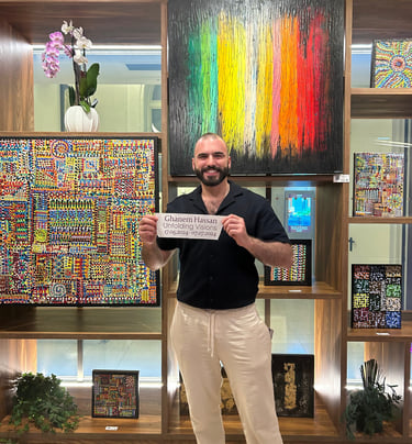 Ghanem Hassan has exhibited his work internationally, presenting a body of work rooted in emotional exploration, resilience, and human connection. His exhibitions reflect a continuous evolution of his artistic language, shaped by personal experience and a deep commitment to storytelling through abstraction.